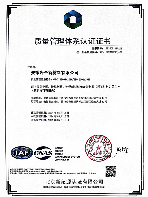 In het steeds evoluerende landschap van industriële materialen is Anhui Yanhe New Materials Co., Ltd. sinds de oprichting in 2012 een prominente figuur geworden. Gelegen op een terrein van 17 hectare in Guangde Economic Development Zone West, heeft het bedrijf een niche voor zichzelf veroverd in de ontwikkeling en productie van speciale etiketteringsmaterialen, functionele tapes voor de elektronica-industrie en zelfklevende producten voor verschillende functionele filmmaterialen. Onder zijn gevarieerde productportfolio, de lasergraveerfilm valt op, vooral als het gaat om de bestendigheid tegen water, olie en chemicaliën